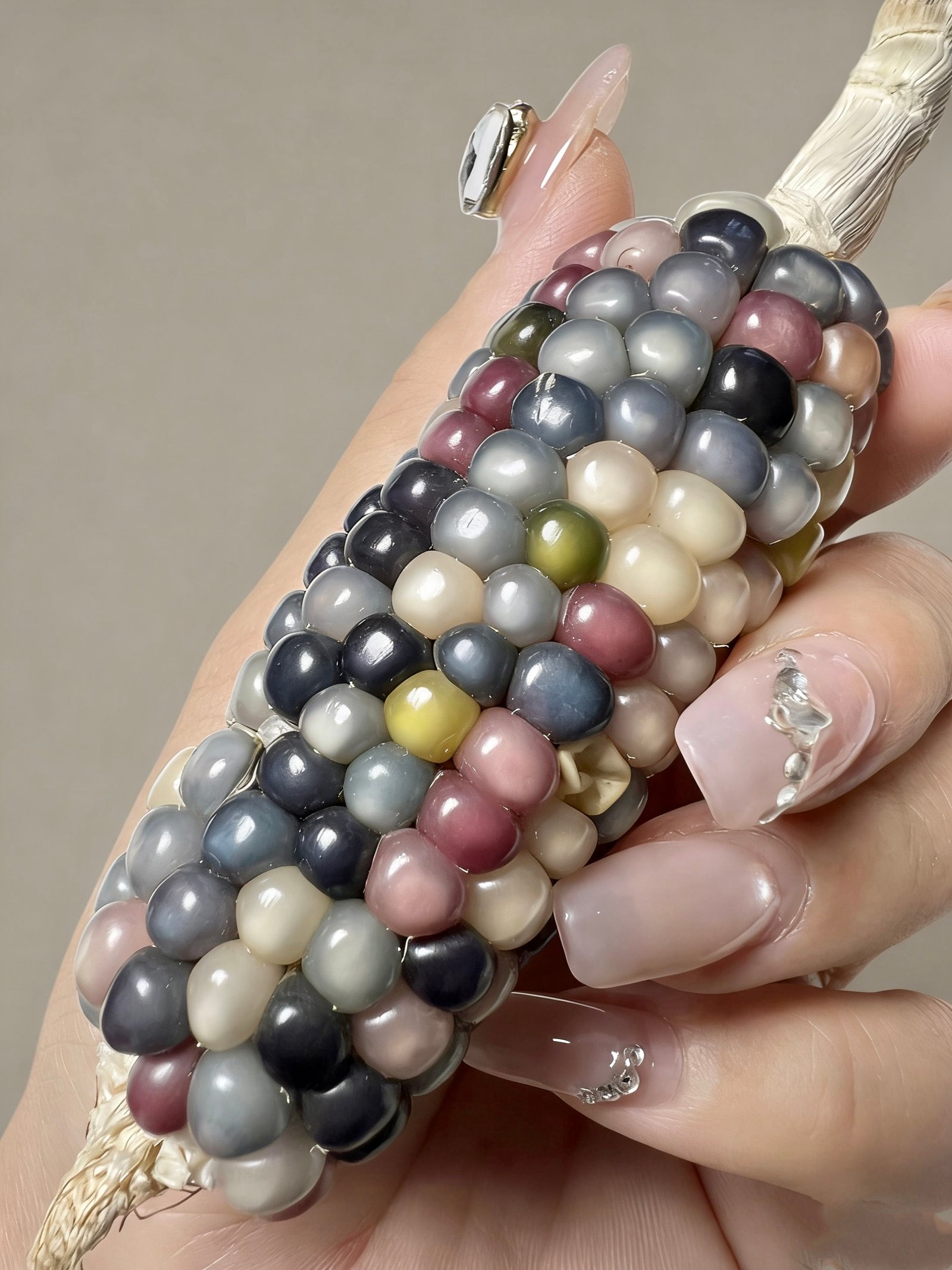 Hold a piece of the universe in your hand with “Cosmic Mosaic.” This extraordinary decorative corn is a testament to nature’s boundless artistry. Its kernels, in a palette of deep cosmic blues, mysterious blacks, and soft stardust whites, are like individual tiles in a celestial mosaic, each one unique and perfectly placed. Polished to a smooth, luminous finish, they glow like distant stars. This is more than an ornament; it’s a conversation piece, a symbol of the universe’s endless wonders, and a treasure for the discerning collector who seeks the extraordinary.
